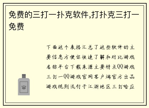 | 游戏名称 | 参与人数 | 核心用牌 | 主要特点 |wpk微扑克网页版 | :-...